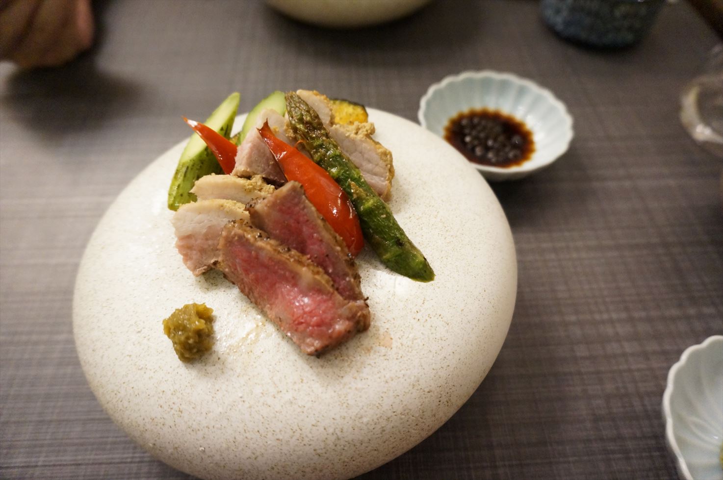 日本の季節野菜のスチーム ポン酢とごまソースで