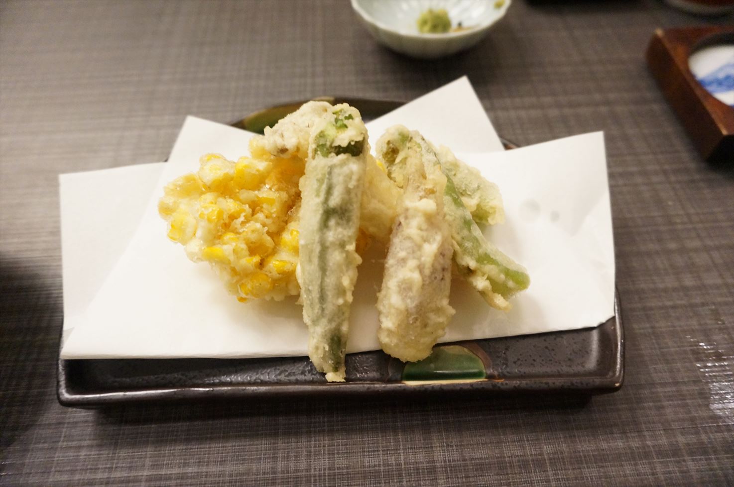 野菜11種の天ぷら。を頼んだつもりでしたが、エビがのってるように見えるので、スペシャル天ぷらのほうだったかも。