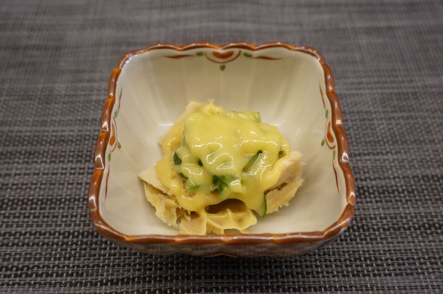 このメニュー、昔荒川シェフが自分で創作して出してたけど、しばらく別の店で働いていたので封印していて、今のお店「大阪料理 あら川」をやることになったのでまた復活することができたのだそう。